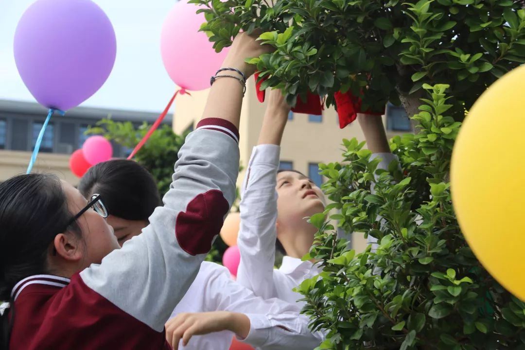 師生與家長共同來到孔子廣場,裝扮心意樹,并簽名留影。他們把誓言簽在誓師墻上,把心愿寫在福袋里,把愿望掛在心意樹上,把笑容留在合影里,他們用這樣獨特的方式宣示青春、宣示夢想,宣示著他們決勝中考的決心!