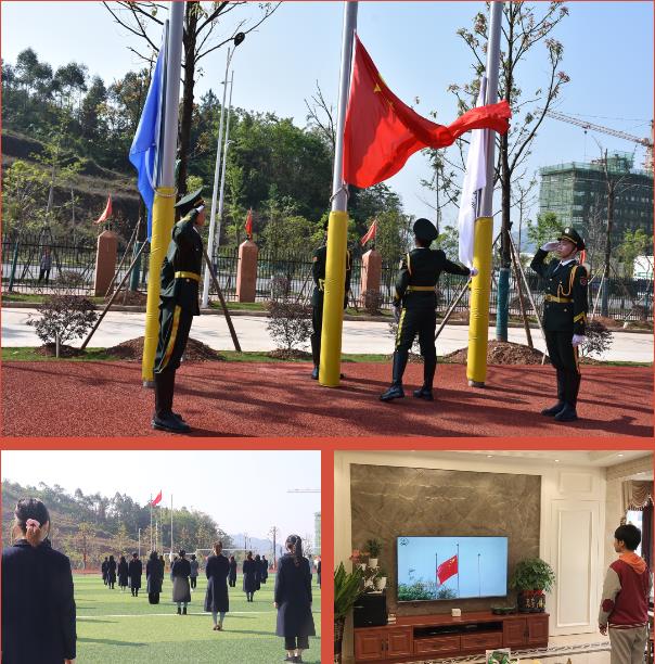 春光明媚,花開正好,旗手在學校操場上將鮮艷的五星紅旗冉冉升起,全體師生起立,高唱國歌,隔空向國旗行注目禮。