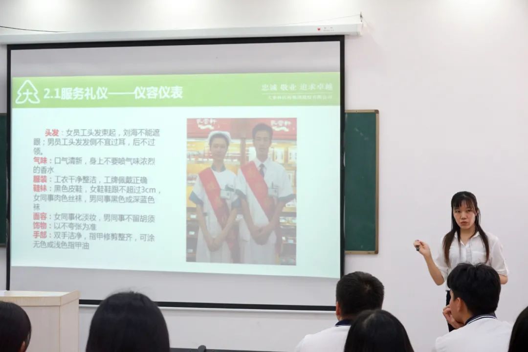 是我校與大參林合作的創(chuàng)新模式,大參林在廣州共有5所合作職校,其中高新醫(yī)藥是唯一一所合作的中職學校。企業(yè)會在藥劑專業(yè)學生第二學年的時候來校挑選人才,對面試篩選進入訂單班的學生提前培養(yǎng),定期授課、定期考核。到學生第三年實習期,就可以直接進入大參林旗下門店實習。
