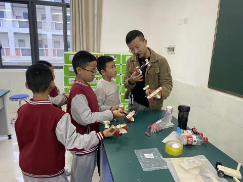有一些語數(shù)課上的“笨孩子”,在科學(xué)大課堂上非常活躍,在完成任務(wù)的基礎(chǔ)上還樂于幫助其他同學(xué),課后也會常常找柴老師詢問關(guān)于制作方面的問題。除了講授每個小制作的原理,教學(xué)生組裝最基礎(chǔ)的零件,柴老師還別出心裁,將原來滑翔機上的零件拆下來改造成了水上自由漂浮的小船。這讓學(xué)生對這些小制作更感興趣,原來只要簡單地轉(zhuǎn)化一下思維,稍加改動,就可以變成新的小玩意兒。